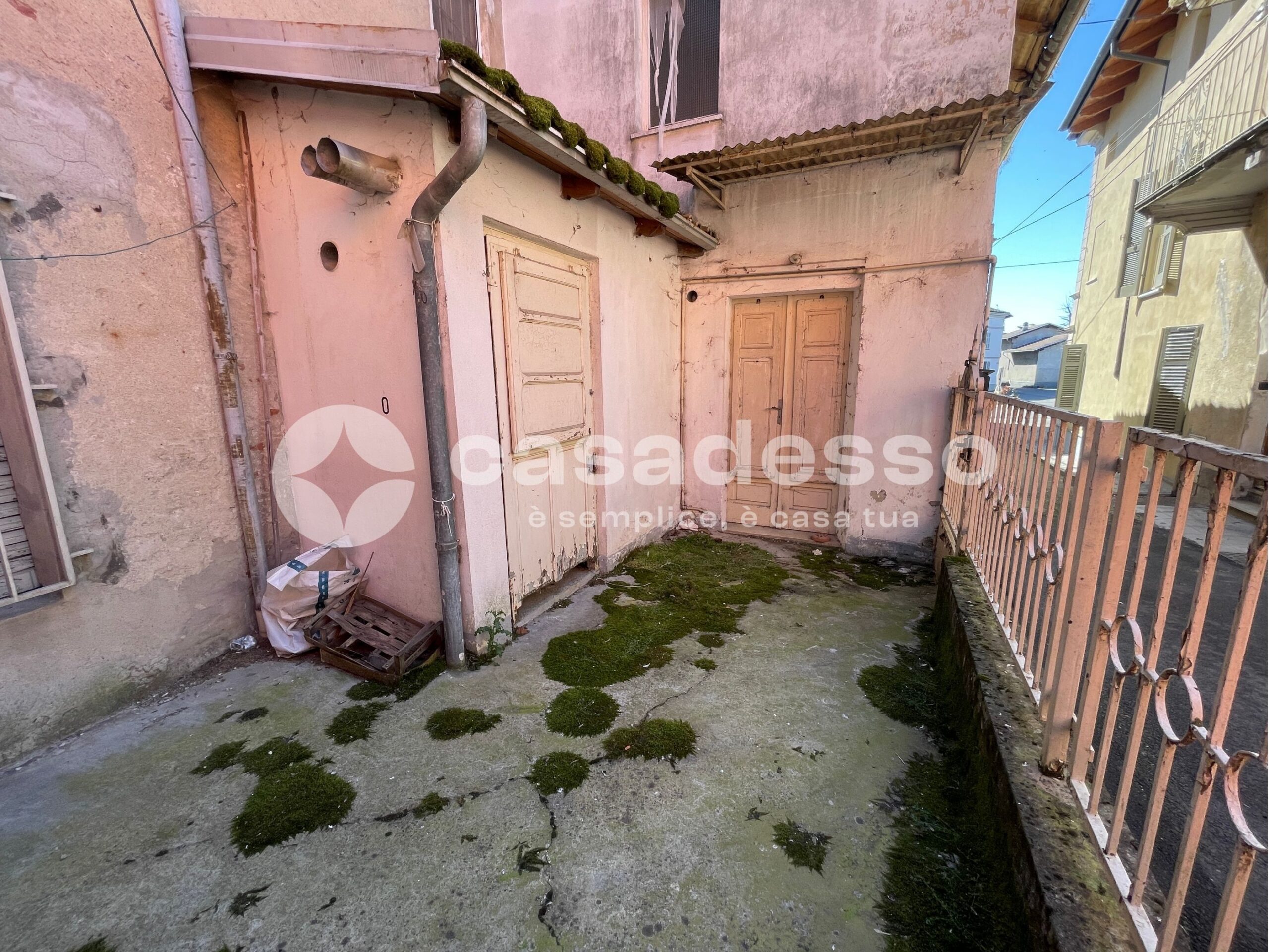 L’immobile si distingue per il doppio ingresso pedonale: il primo conduce direttamente al soggiorno, creando un accesso pratico e immediato alla zona giorno; il secondo, invece, accompagna al piccolo giardino di proprietà, uno spazio esterno intimo e funzionale, dove troviamo anche un comodo ripostiglio e il locale caldaia.