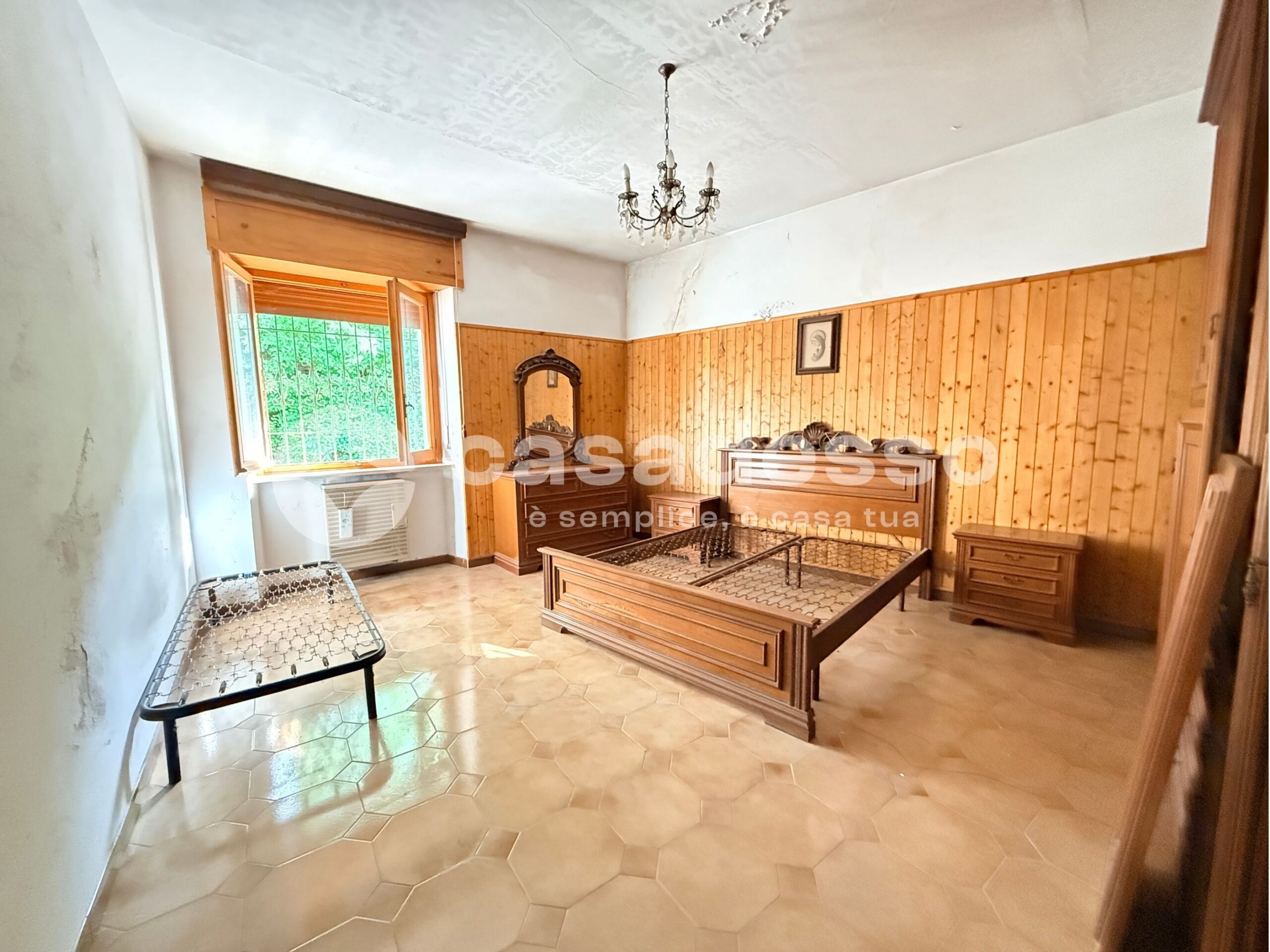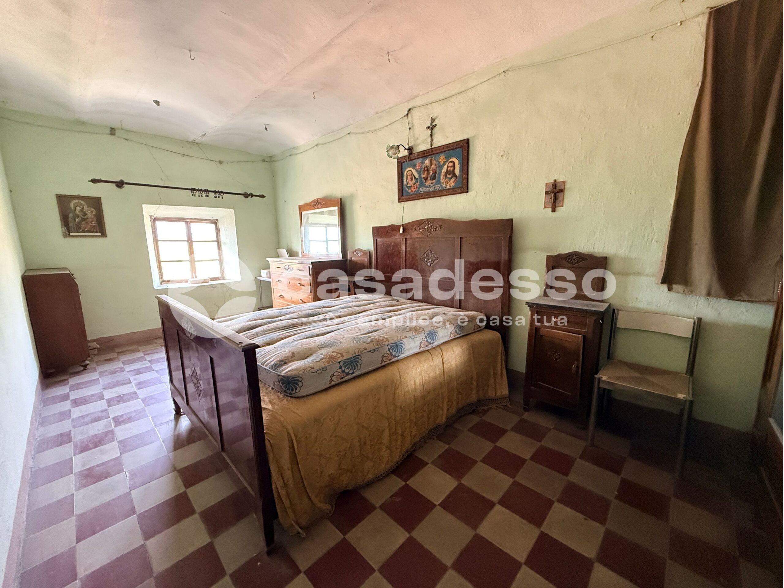 L’ingresso dell’abitazione si apre al piano terra, dove troviamo una prima camera e un pratico locale di sgombero, perfetto come spazio accessorio o deposito.